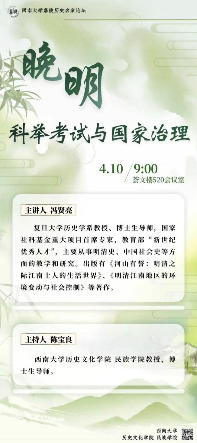 冯贤亮,复旦大学历史学系教授、博士生导师,国家社科基金重大项目首席专家,教育部“新世纪优秀人才”,主要从事明清史、中国社会史等方面的教学和研究。出版有《河山有誓:明清之际江南士人的生活世界》、《明清江南地区的环境变动与社会控制》等著作。