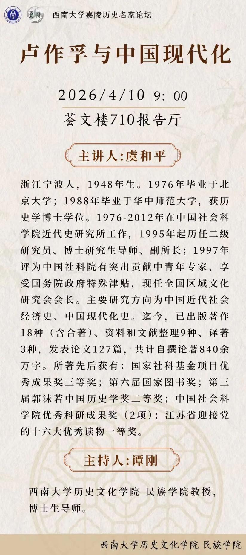 近代史研究所工作,1995年起历任二级研究员、博士研究生导师、副所长;1997年评为中国社科院有突出贡献中青年专家、享受国务院政府特殊津贴,现任全国区域文化研究会会长。主要研究方向为中国近代社会经济史、中国现代化史。迄今,已出版著作18种(含合著),资料和文献整理9种、译著3种,发表论文127篇,共计自撰论著840余万字。所著先后获有:国家社科基金项目优秀成果奖三等奖;第六届国家图书奖;第三届郭沫若中国历史学奖二等奖;中国社会科大陆成人影片
